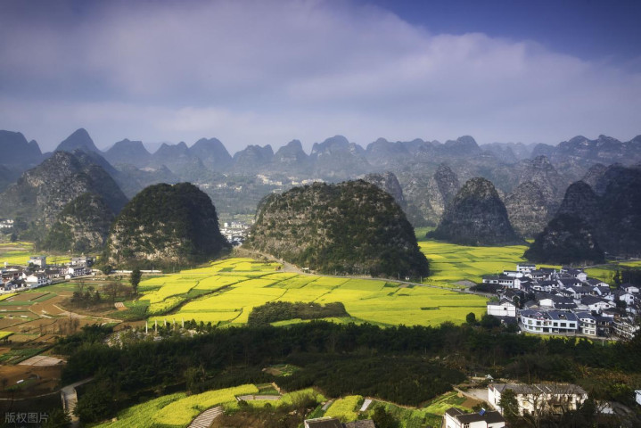 来 22°C 兴义看最早的春天,万峰林裹着金黄油菜田铺成毯,村庄嵌在花海里冒炊烟,暖风裹吐花香不冷不燥。