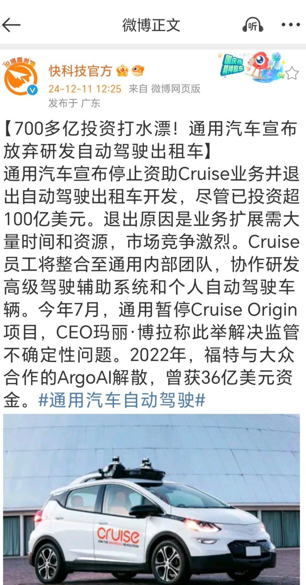 【智能驾驶难倒传统车企,通用:就当我700亿汲水漂了吧】惟一传统品牌一发力,他们就会发现我方压根无法援助到智能化期间,然后运转各式割肉。700多亿汲水漂,通用住手Cruise业务是绝不料外,九九归一还是传统车企很难去辘集这一套东西