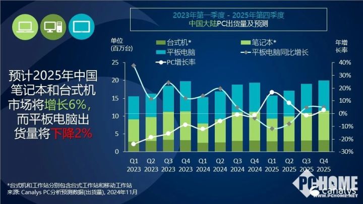 Canalys今天发布了最新的调研敷陈,暴露2024年第三季度,中国大陆PC出货量同比小幅下滑1%,共计出货1110万台,其中铺张市集出货量在节前备货和政府铺张引发举措的推进下同比增长4%。Canalys料到,2025年PC市集仍将链接复苏,受支撑铺张者和企业采购的刺激战略影响,台式机和札记本将分离增长9%和4%。