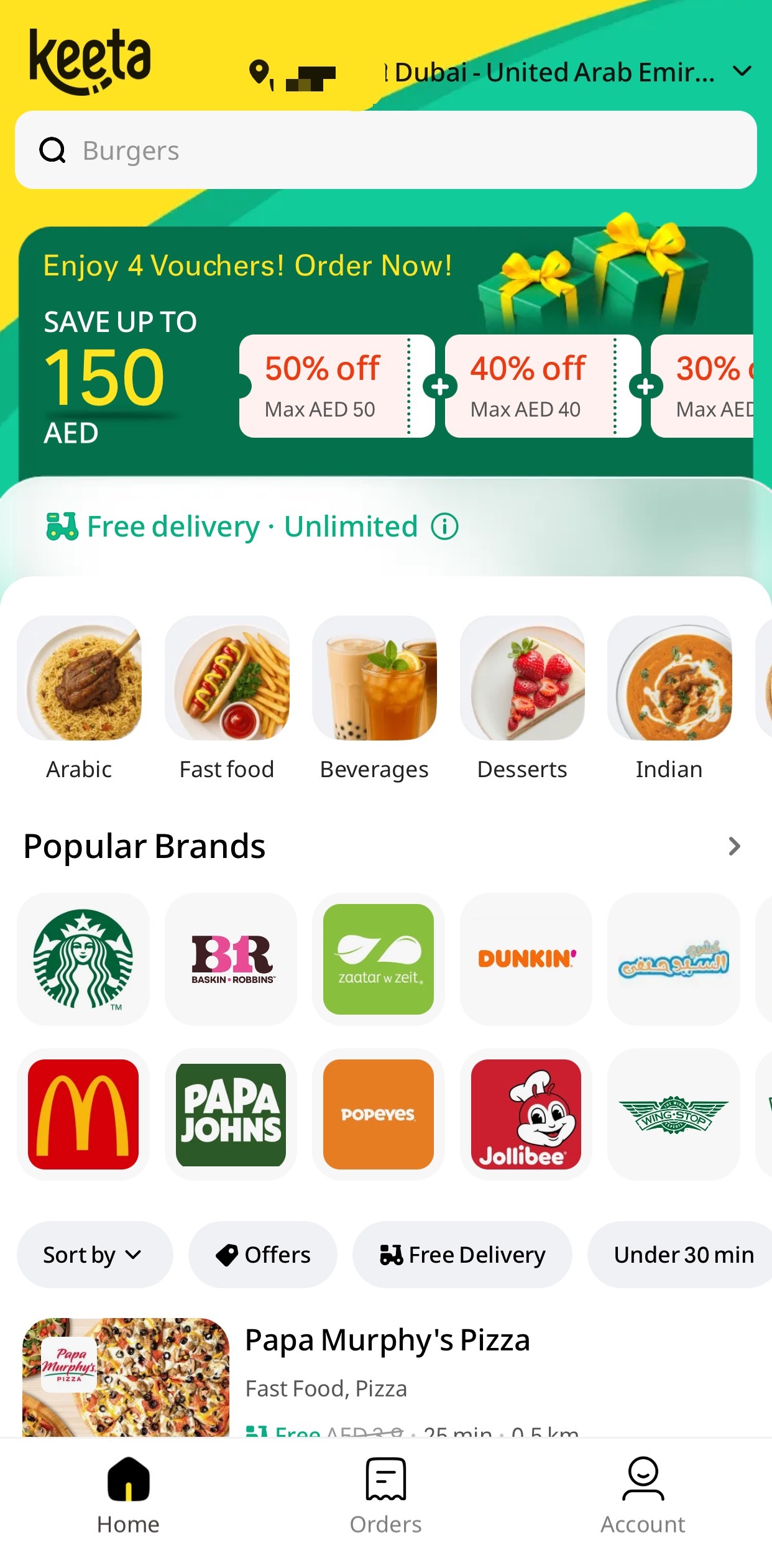 在阿联酋迪拜,用户可通过Keeta下单多种品类、多个品牌的餐品外卖管事。