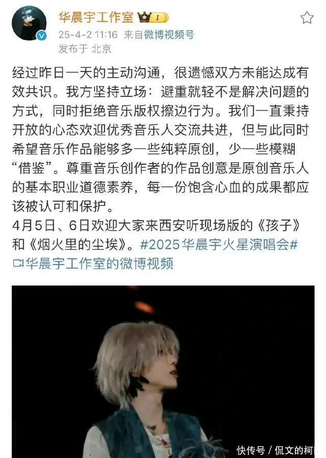 一石激起千层浪,今天的文娱圈格外吵杂,陆接续续曝出多个大瓜,有东说念主在线否定恋情,有东说念主回话被节目组淘汰,有东说念主在舞台上我晕,还有东说念主引起争议…的确是个个离谱! 1、华晨宇回话音乐版权问题,称拒却版权擦边,激发烧议 昨天上昼,黄霄雲因为辟谣《炊火里的尘埃》这首歌的版权问题,一度冲上热搜,效力不测激发争议。