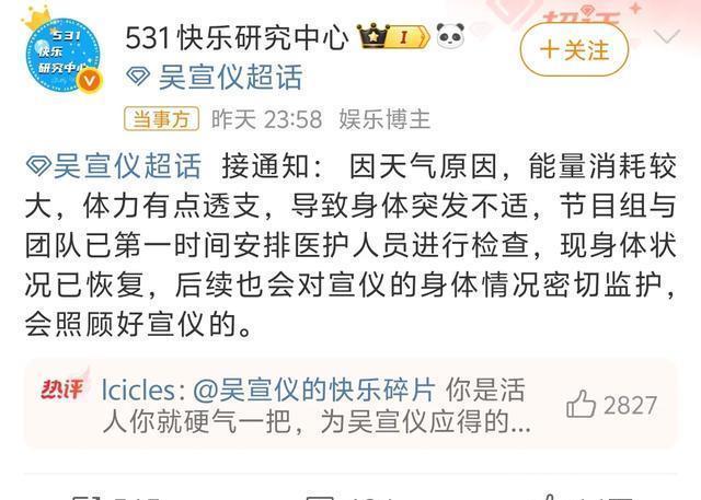 后续责任室回话称因天气原因,能量浪掷较大,膂力有点透支,导致形体突发不适,节目组与团队已第一本事安排医护东说念主员进行查验,现形体景况已复原。