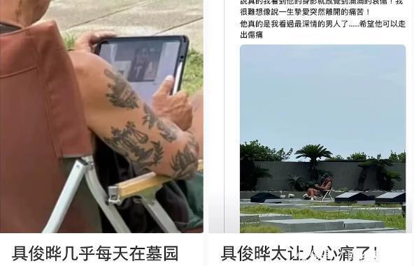 据悉,自从大S安葬后,具俊晔隔三差五便回到坟场来打听爱东谈主,偶而代一坐等于泰半天,此前有网友在坟场偶遇具俊晔,其时具俊晔亦然拿着相片和食品,坐在大S墓前。疑似是在用平板看大S生前演过的影视作品,可谓特地深情。