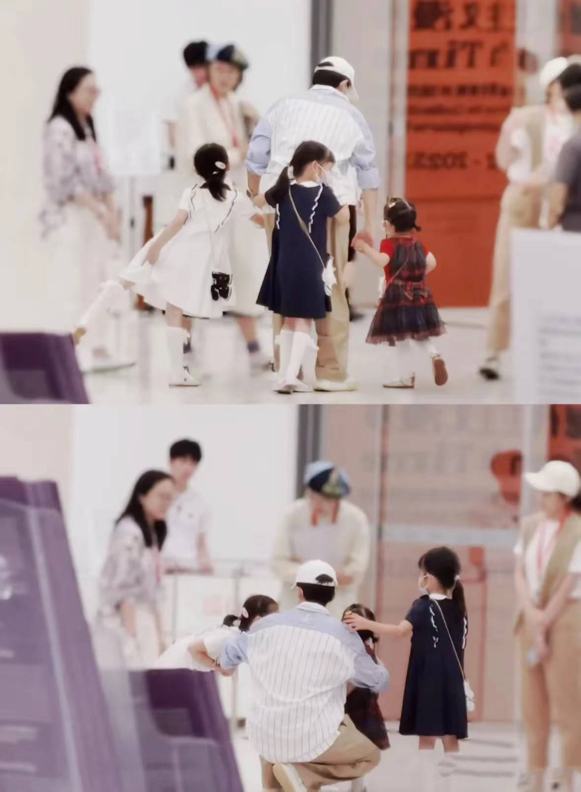 网友说小咘芽从一进会场运行,就被爸爸抱在怀里。可能是小咘芽的年龄小,也可能是爸爸愈加偏宠小咘芽。
