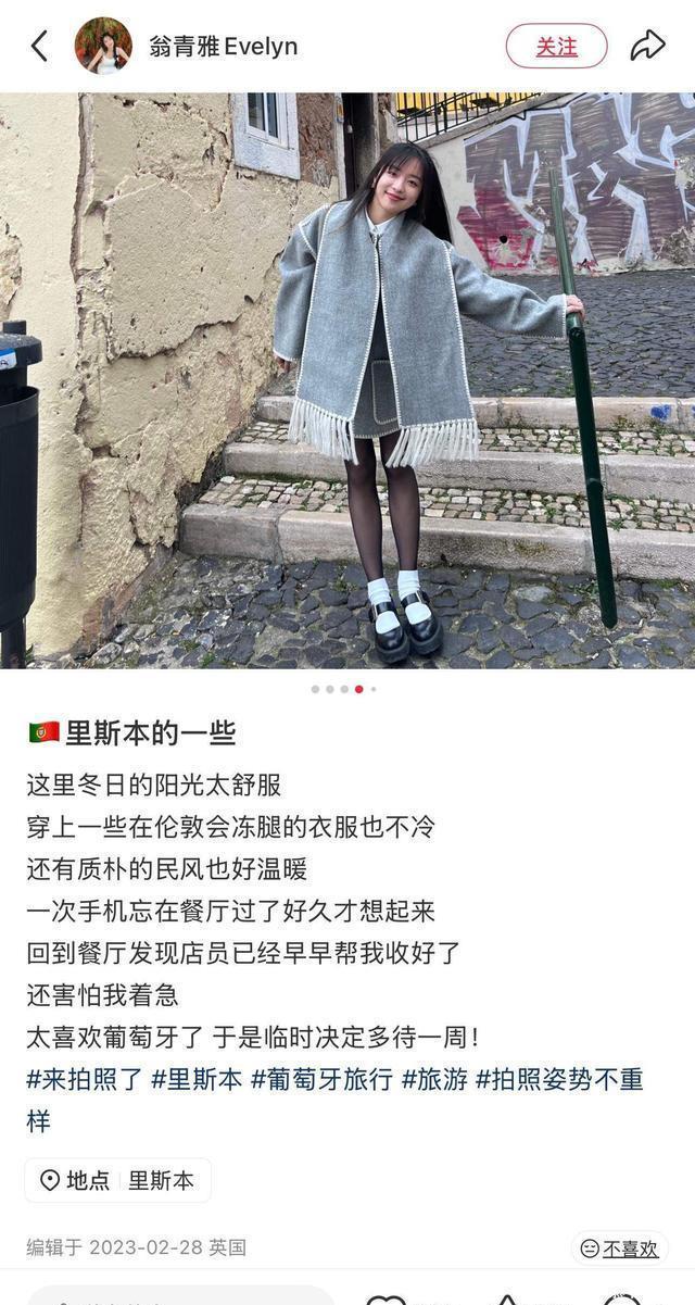 奈何,网友早就识别出此女身份有诈。 别的不说,就说她我方发的社媒: “太心爱葡萄牙了,临时决定多待一周。”