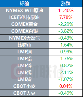 WTI 5月原油期货收涨11.42好意思元,涨幅跨越11.40%,报111.54好意思元/桶。布伦特6月原油期货收涨7.87好意思元,涨幅快要7.78%,报109.03好意思元/桶。