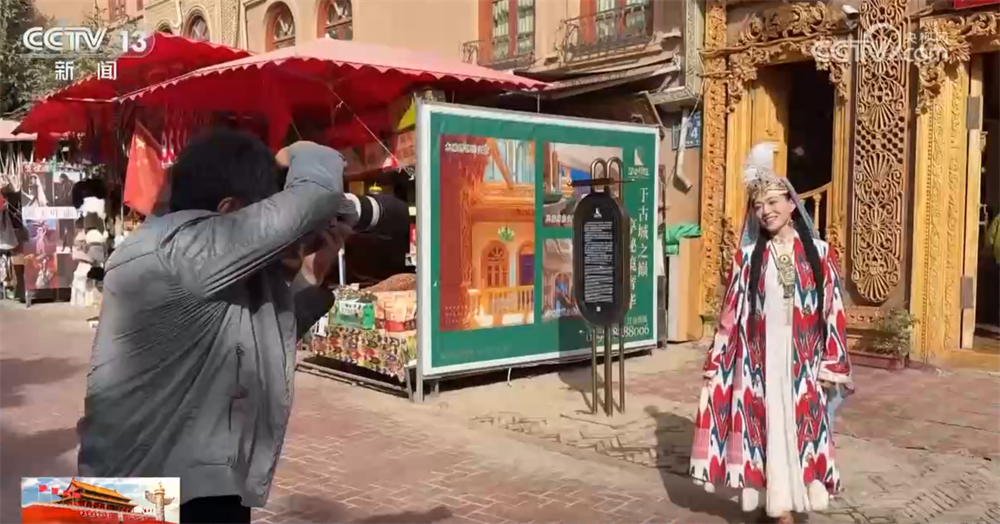 在新疆喀什古城景区,这几天每天皆举行开城庆典,管待来自寰宇各地的旅客。古城街巷里更是挂满了国旗,让东说念主们感受到浓浓的国庆氛围。 景区东说念主气火爆也带来生意机遇,身着民族传统衣饰的旅客遍地可见,旅拍影相师则在一旁纪录。