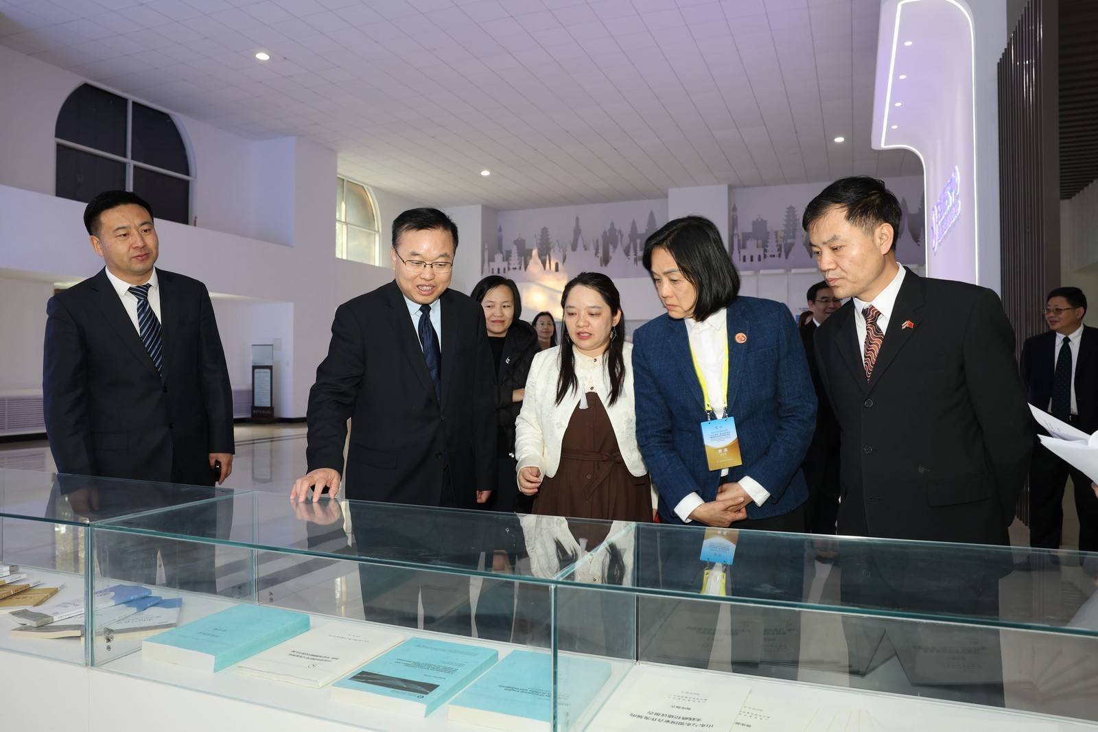 代表团来到国度纺织面料馆。馆内面料及衣饰样品林林总总,先进的纺织本事展示令东说念主目不暇接,泰方学生被深深引诱,咋舌连连。当纺织服装学院认真东说念主将尽心准备的、象征中泰友谊的“鲁锦吉象”礼物赠予说念诺·苏提尼帕潘女士时,她含笑着双手接过礼物,脸上飘溢着首肯,深情地说说念:“感谢德州学院的尽心,这份礼物我会好好珍视。它不仅承载着两校师生的深厚神气,更是中泰两国文化融合的珍稀系念与不灭见证。”