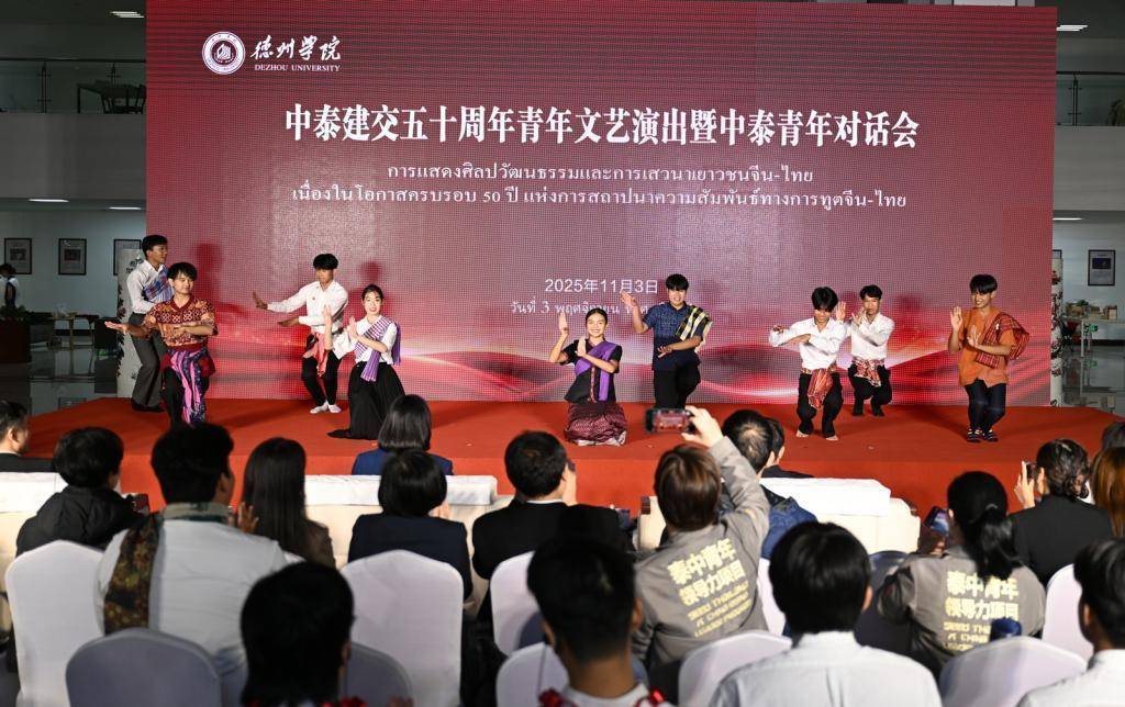 文艺上演节目精彩纷呈,歌曲《只怪再会太璀璨》唱出中大半个世纪的骨血深情;跳舞《摩肯之地的长荧惑》展现泰国东北部私有风情;技击扮演《拳倾四海,谊结千秋》与跳舞《泰国水灯舞》体现两国文化共鸣;诗朗读《采桃花》由中泰师生双语演绎,传达诗琳通公编缉下中泰昆仲神气。现场还举行泰国学问问答抢答,脑怒激烈欢快。泰国后生学生沙哈猜·班丹郁勃地说,“来中国粹习交流,深感文化之好意思,中泰后生扮演各具特质,让我恍悟到不同文化的魔力,此行收货颇丰,归国后定将常忆中国与德州。”