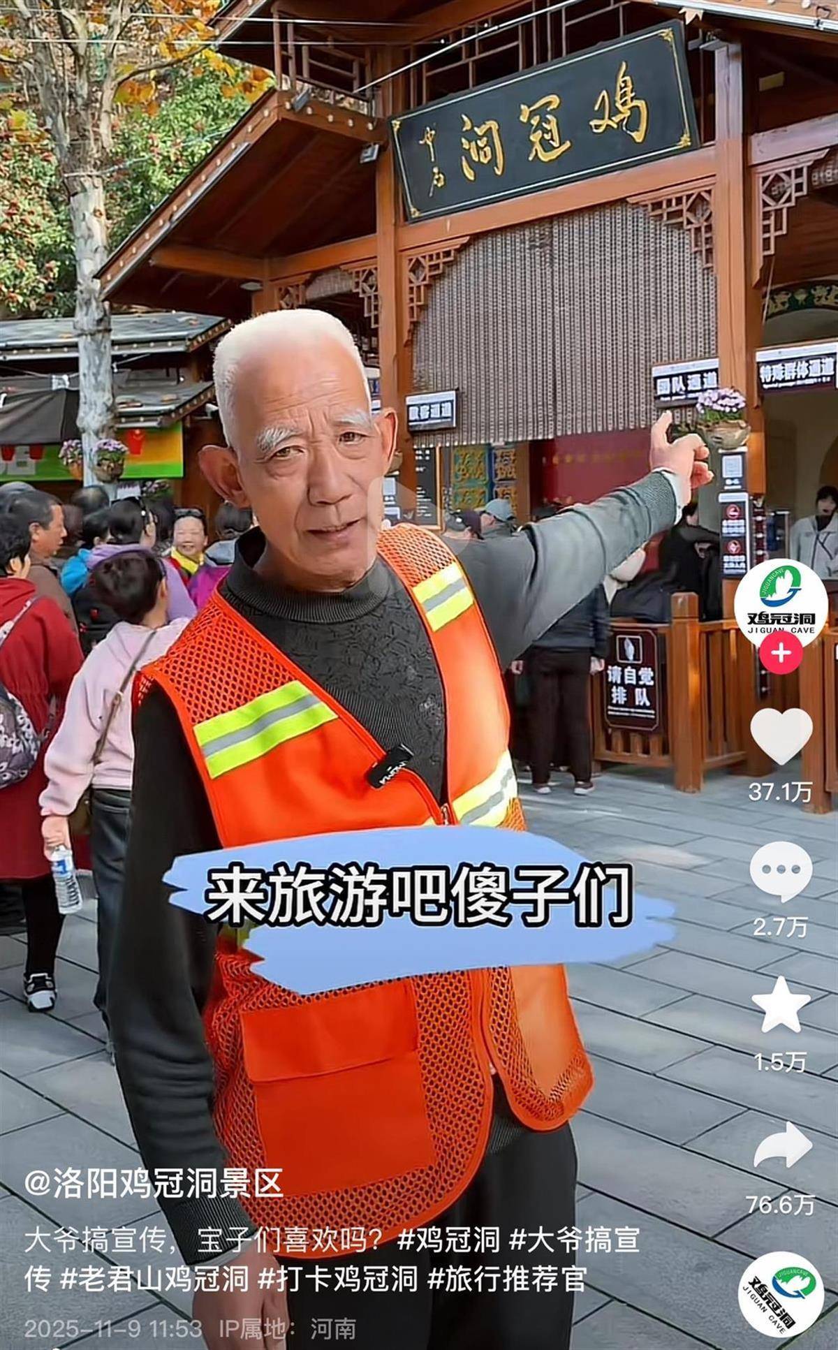 11月9日至10日,河南一“白眉”大爷相通口误的景区视频火了。他先容一景区的特质时相通口误,令东谈主忍俊不禁,视频点赞量跨越37万。10日下昼,景区责任主谈主员告诉极目新闻记者,“白眉”大爷老赵平日在景区作念环卫工,莫得意猜度会这样火。