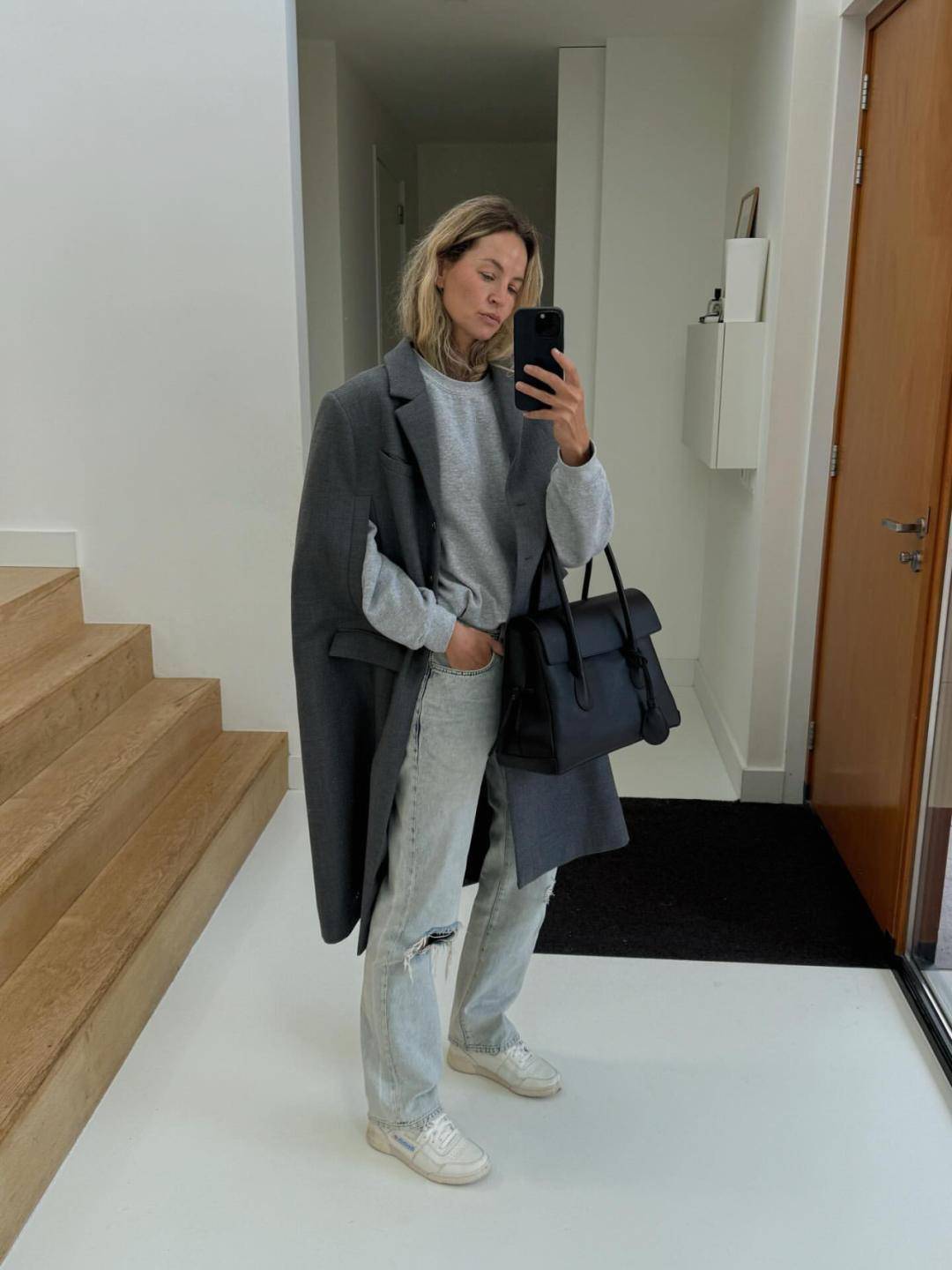 大衣+卫衣是秋冬常见的组合之一。选拔连帽卫衣搭配羊毛大衣,帽子的存在突破了大衣领部的单调,增添端倪感和年青活力。